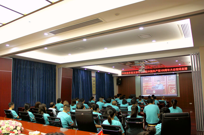 2021年7月1日,湖南佰羊黨支部組織公司全體黨員及群眾收看慶祝中國共產黨成立100周年大會直播實況。