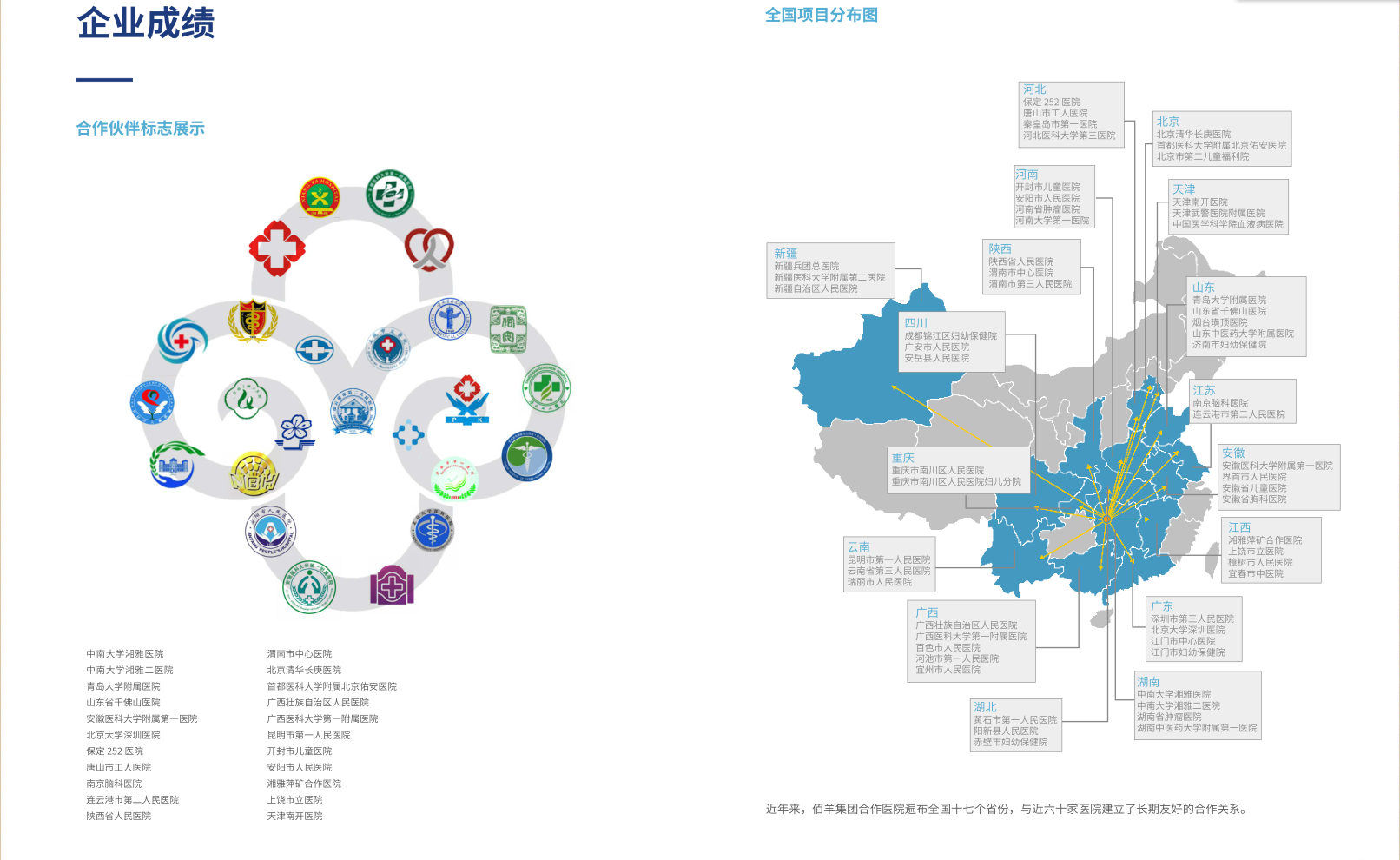 佰羊集團合作醫院遍布全國十七個省份,與近六十家醫院建立長期友好的合作關係。